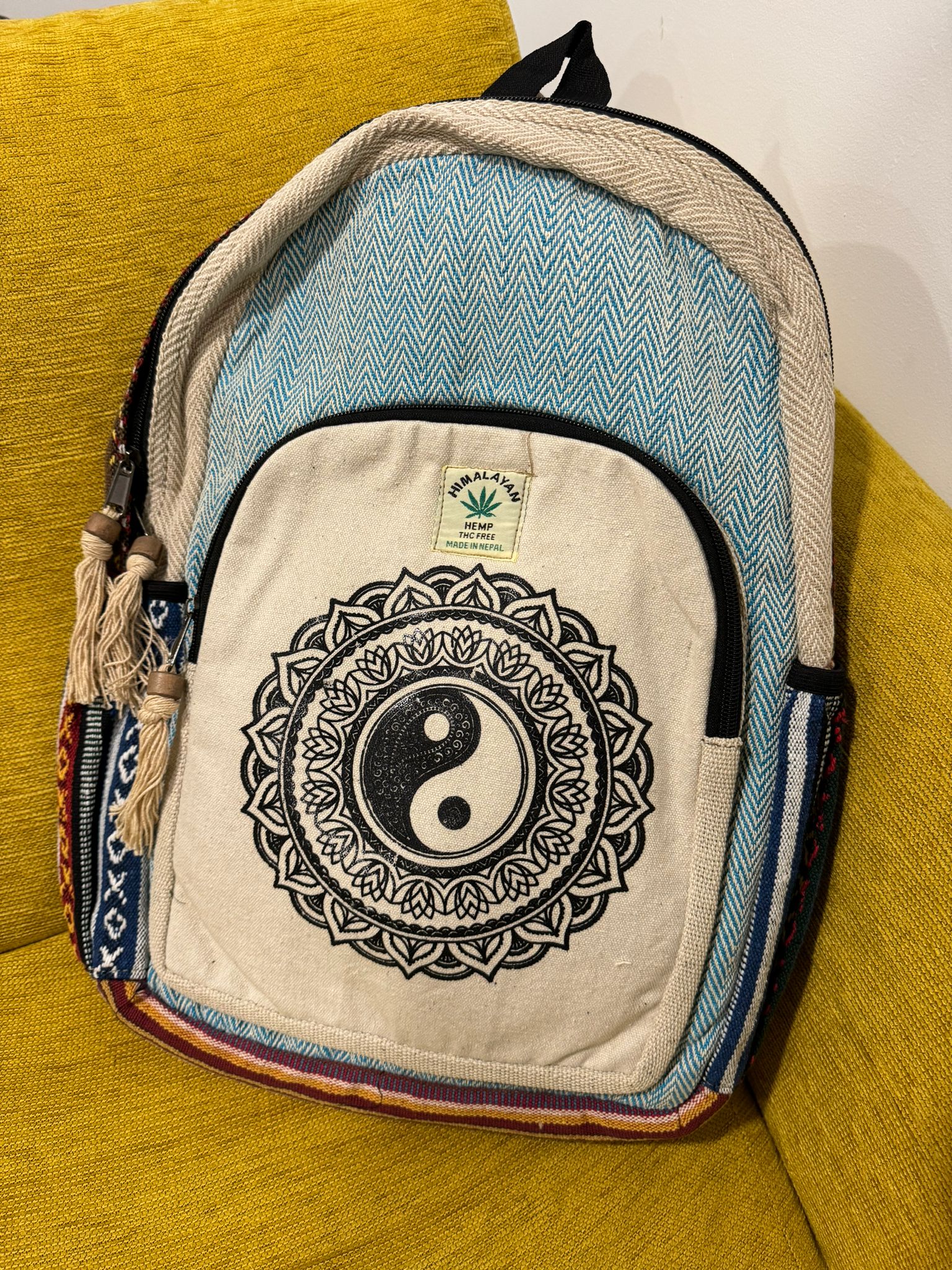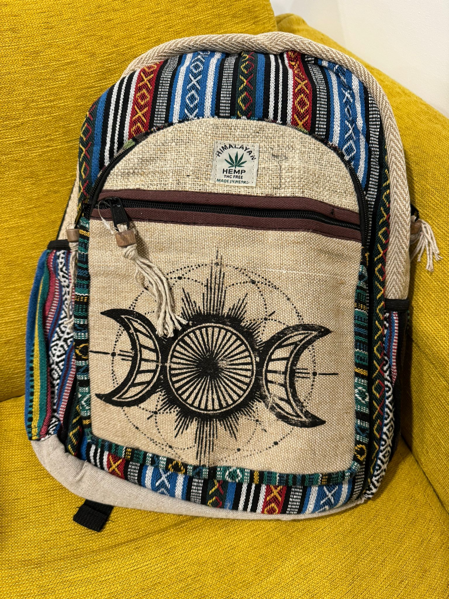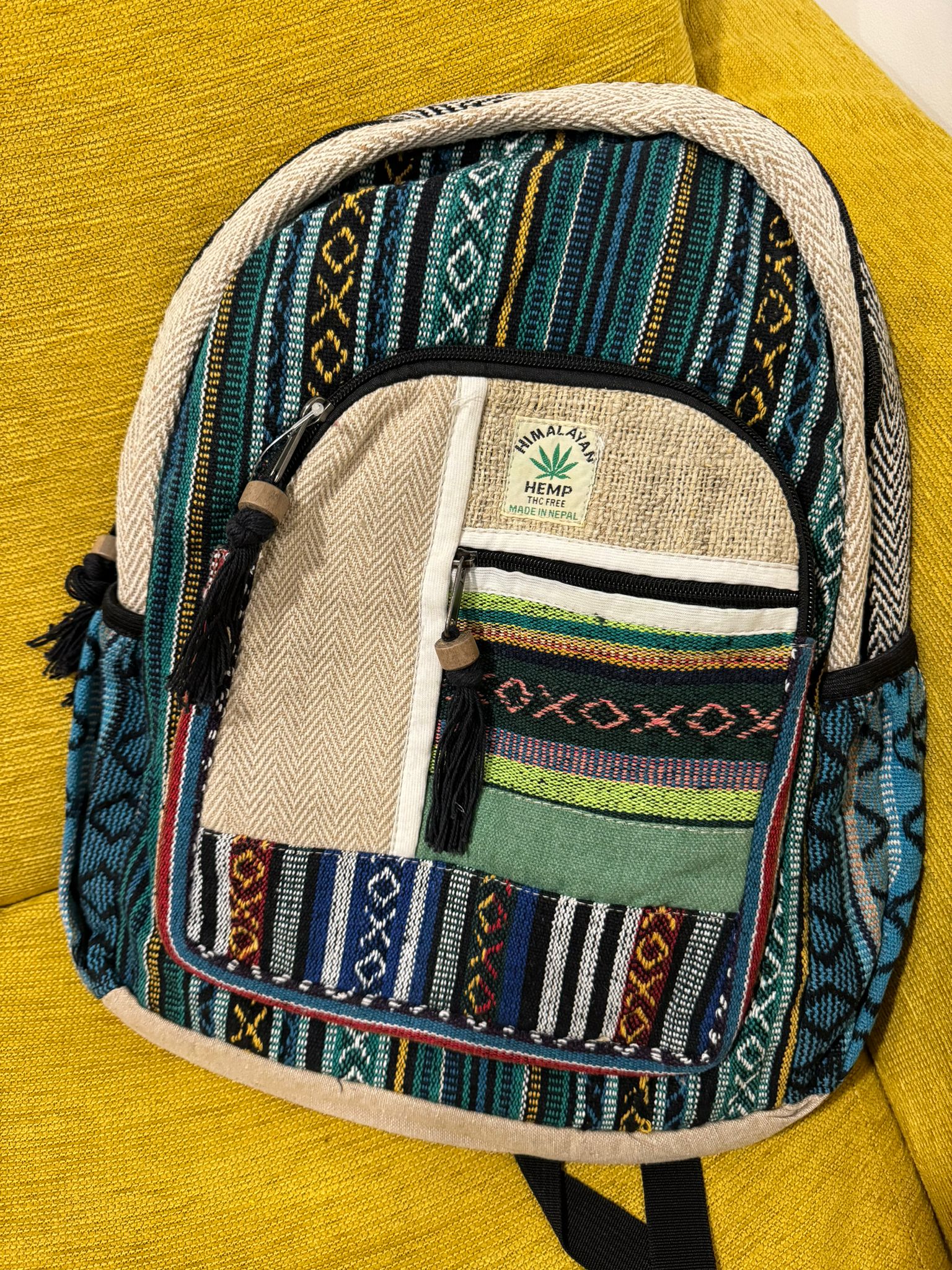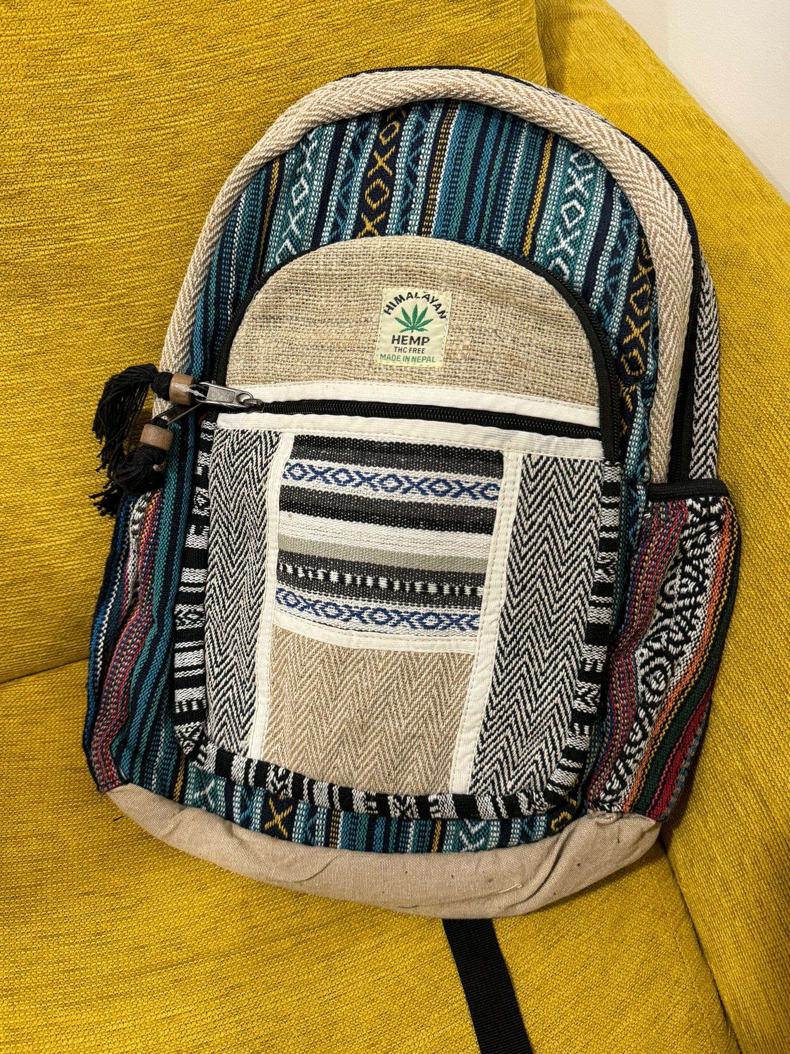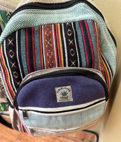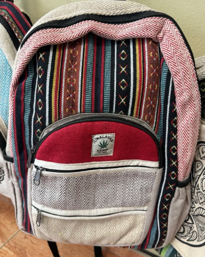 Mochila de 40x30x20cm en tela, marca Himalayan, con preciosos motivos bordados y diferentes diseños.